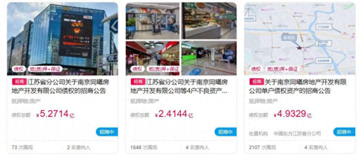 最近,锐评君在阿里资产官网发现《中国东方江苏省分公司关于南京同曦房地产开发有限公司债权的招商公告》等3条债权招商公告。