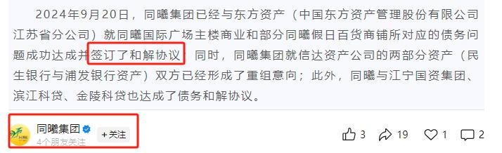 值得注意的是,2024年9月,同曦集团与东方资产就同曦国际广场主楼商业和部分同曦假日百货商铺所对应的债务问题成功达成并签订了和解协议。