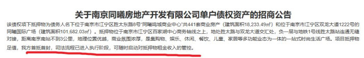 《关于南京同曦房地产开发有限公司债权的招商公告》,具体来看: